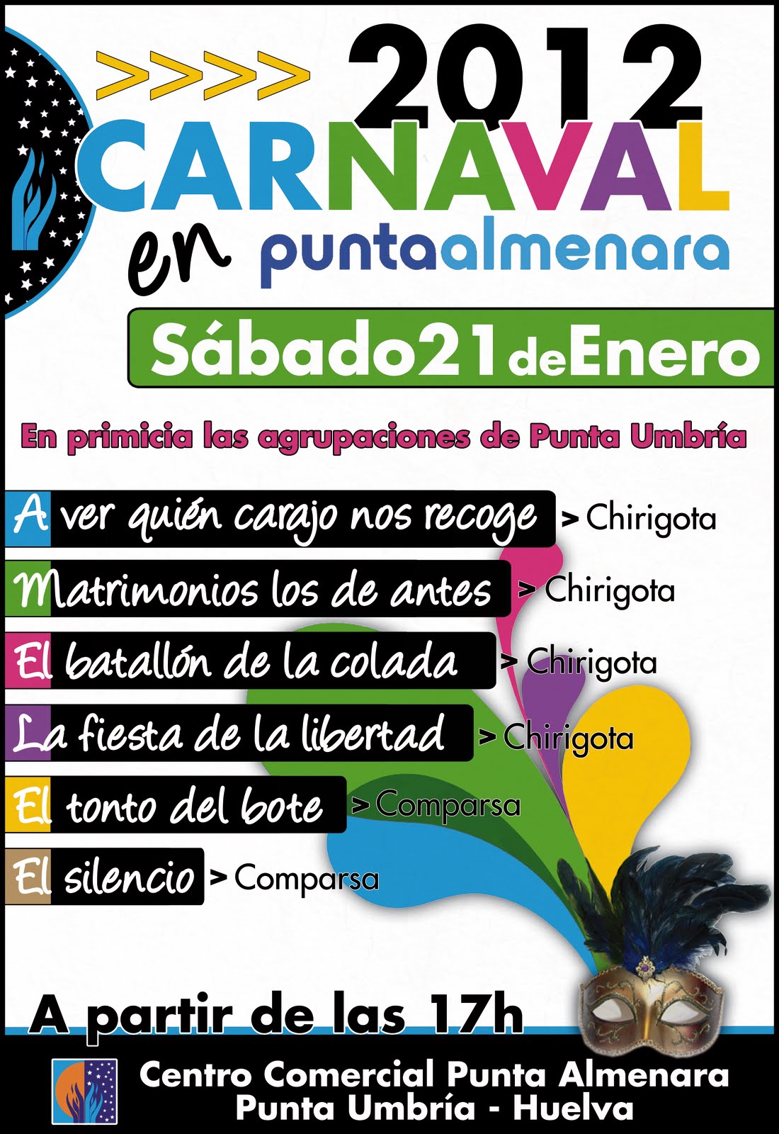 En primer lugar actuamos nosotras, La fiesta de la Libertad, con la ilusión de un niño en la mañana de reyes, por lo que esperamos les haya gustado a los allí presente. Dedicamos nuestro repertorio a Gabi en primer lugar puesto que se ha lesionado y de momento no podrá salir con nosotras tocando la guitarra como era habitual...de momento ¿verdad Gabi?. Es por eso que la presentación de Carmela del año 2010 que llevamos por bandera se la dedicamos a Enrique Olaya, que se ha ofrecido a cubrir la baja de Gabi y a Esther Tinoco Sacramento, la reina del carnaval de la Luz 2012.